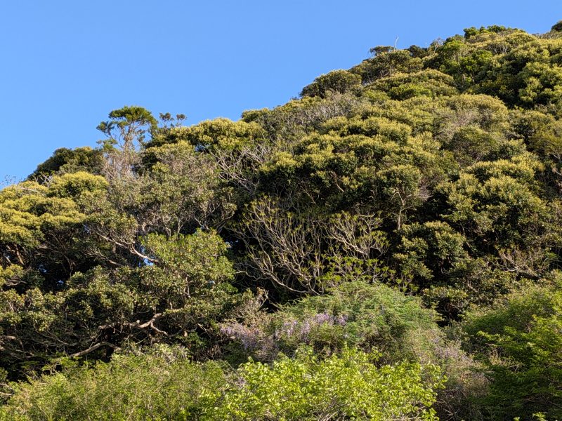 海岸までの道のりは、写真の様に山ふじの開花が見られ、またウグイスのさえずりが聞けて春欄間といったところであった。