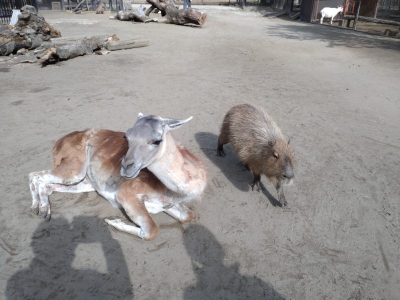 確かに園内の中庭に入ると早速「カンガルー」「カピバラ」「ウサギ」などが餌を求めて近寄ってきた。