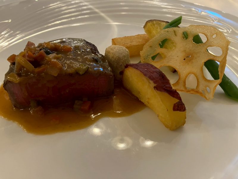 ホテル1階がレストラン、ディナーは、フレンチのフルコースで、写真はその一品