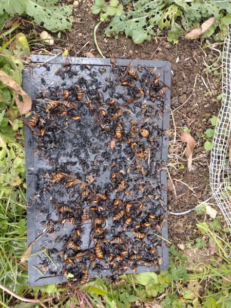 内検の準備をしていた時に、オオスズメ蜂が1匹飛来したが、ネットの側には行かず離れ去ってしまい、その後1匹の飛来もなかった。