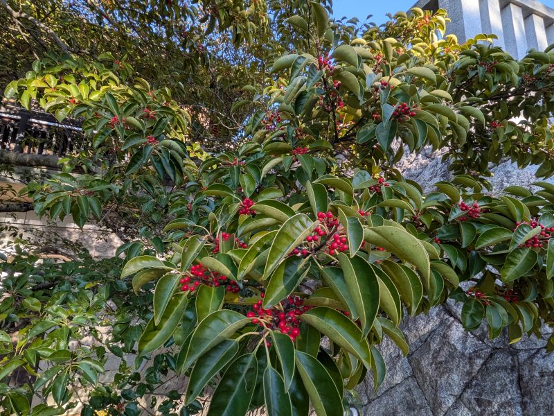 稲毛浅間神社のコガネモチ、小粒で実も少ない。