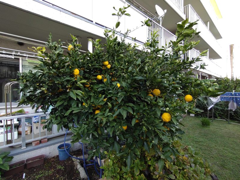 庭の柚子が今年も多く実っている。