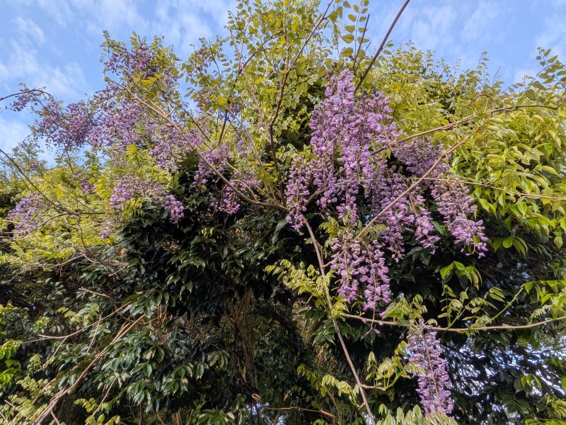 桜の花が4月初旬には終わり、まもなくすると「山ふじ」が咲き始め、中旬には「マテバシイ」が咲き始めた。
